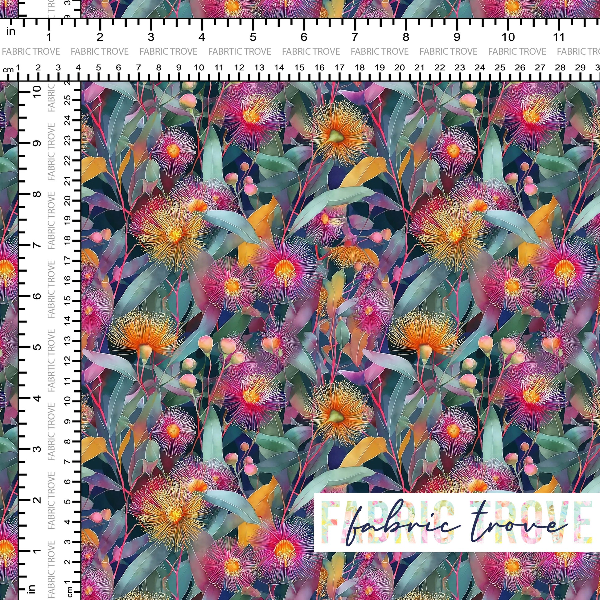Celebrate Australia's native beauty with Gumnut Wishes, a stunning print featuring gumnut flowers and eucalyptus leaves in beautiful shades of pink and gold on premium cotton fabric. - - - - -