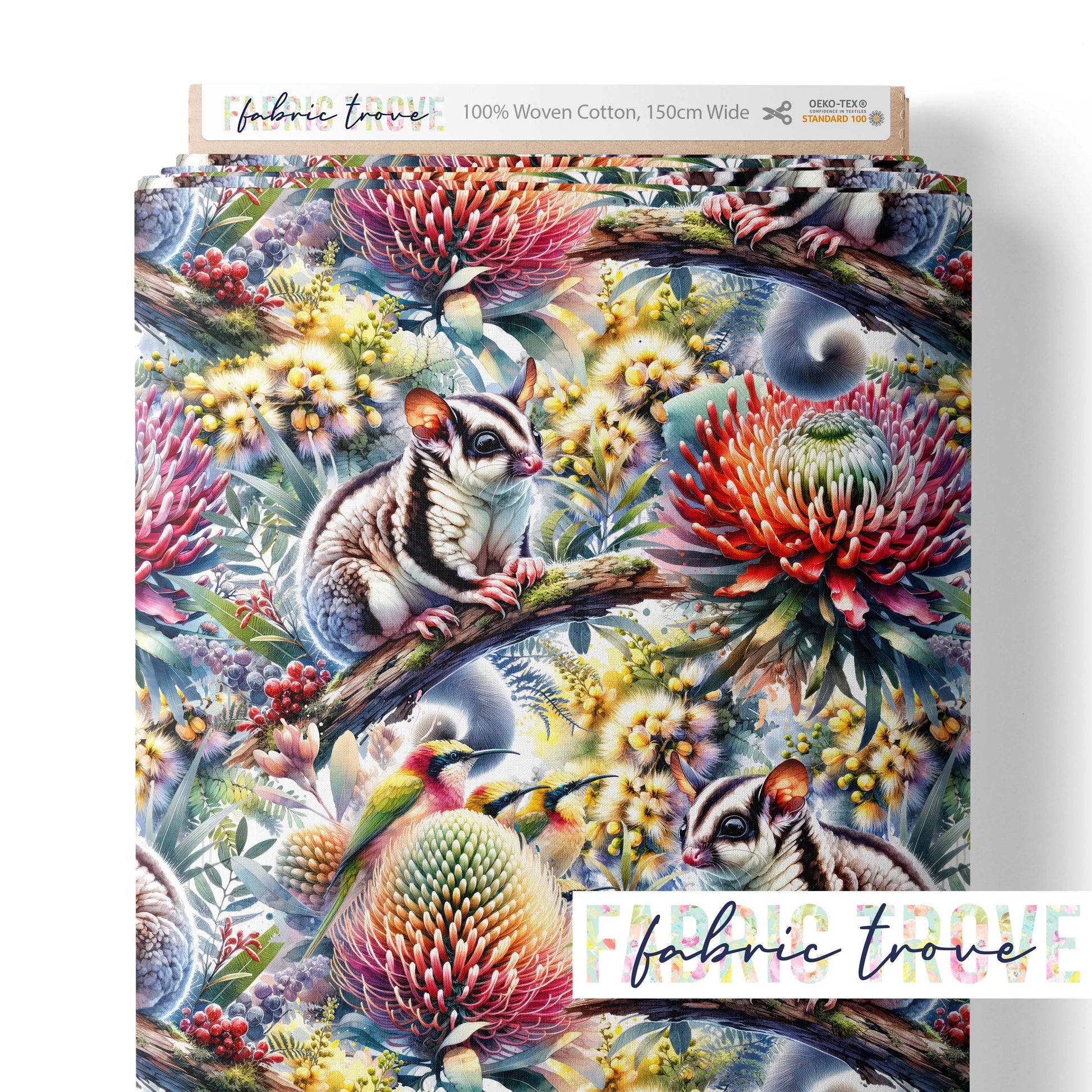 Celebrate Australia's adorable native wildlife with Sugar Glider, a beautiful fine art-inspired print featuring a sugar glider and wildflowers on premium cotton fabric.